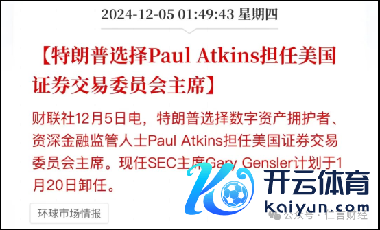 音问面上,特朗普选拔数字钞票拥护者、资深金融监管东说念主士Paul Atkins担任好意思国证券买卖委员会主席。