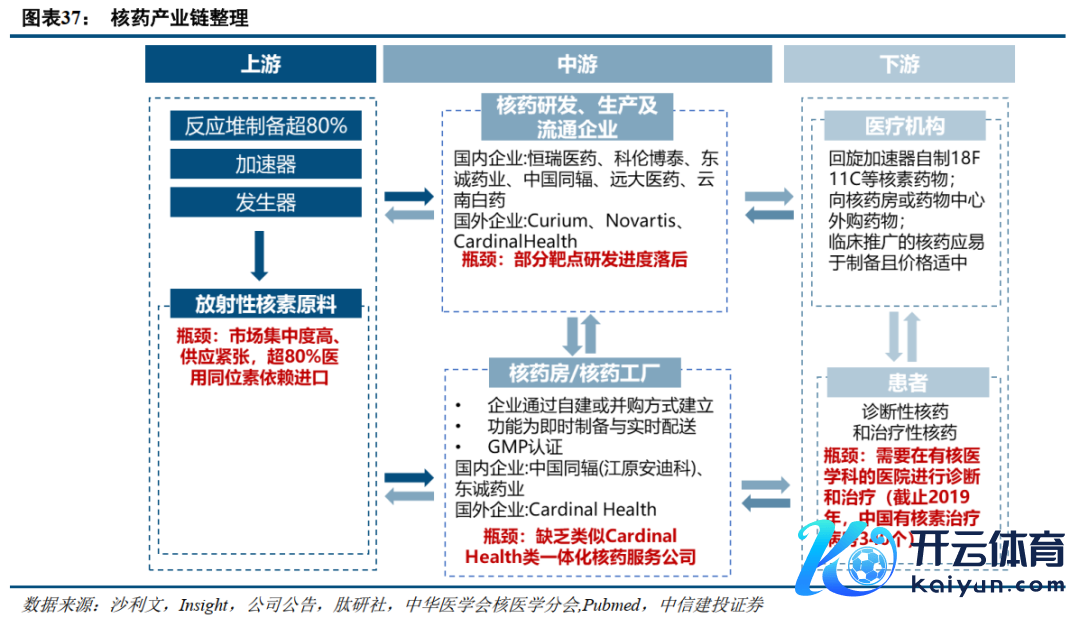 核药:RLT疗法开启赛谈新篇章,恒久发展值得关注核药,别名发射性药物,是指含有发射性核素、用于医学会诊和调理的一类尽头药物。发射性药物不错是发射性核素无机化合物,如201TlCl等;也不错是由发射性核素和非发射性被象征物资两部分组成。核药产业链不错分为三部分:上游——通过响应堆等方式分娩发射性同位素;中游——由发射性药物研发、分娩及诱导企业来分娩发射性药物;卑劣——在医疗机构根据具体会诊有推敲来为患者进行会诊或调理。