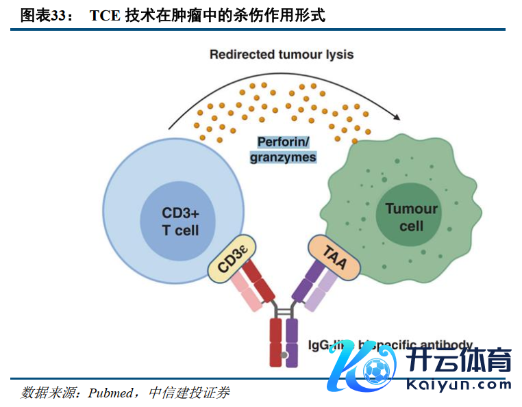 TCE类药物向自免相宜症打破,本领特色有望为患者带来更多获益。T细胞衔接器(Tcellengager,TCE)是一种能同期取悦特定抗原和T细胞CD3抗原的双特异性抗体,可招募T细胞特异性杀伤疾病细胞,此前该本领在一些血液瘤中展现出细密无比的临床后果。CD3通过借助T细胞来进行杀伤靶细胞,并非传统TAA。CD3类药物多以多抗形态存在,主要以CD3搭配TAA的形态来进行假想。TAA端的假想方针在于匡助抗体靶向肿瘤组织,而CD3端能靶向T细胞,通过借助T细胞开释的杀伤物资(穿孔素/颗粒酶等)来进行细胞杀伤功能。