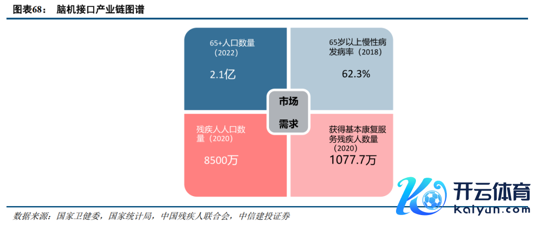 2)市集驱动:医疗是脑机接口最紧要最刚需的应用场景之一,慢性病患病率与残疾东谈主东谈主数连年增长,高大社会需求将进一步推动行业发展。脑机接口本领兴发祥于康复调理领域的伏击需求,在我国老龄化进程加快的配景下,针对神经系统疾病的脑机接口应用展现出巨大的市集后劲,在健康和康复领域均阐扬枢纽作用。2020年中国残疾东谈主东谈主数一经打破8500万东谈主,但获取基本康复处事的残疾儿童及合手证残疾东谈主数仅有1077.7万东谈主,残疾康复处事市集亟待新本领隐秘。
