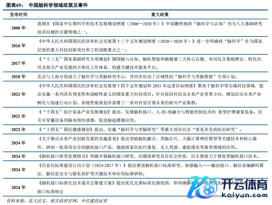 3)计谋驱动:中国脑科学领域计谋频出。国度《十四五》谋略明确将“脑科学与类脑商讨——类脑策动与脑机和会本领研发”纳入谋略,即建议“中国脑推敲”。本年以来,以国度工信部、科技部等牵头,频频推出荧惑发展脑机接口本领、开采行业轨范的计谋。