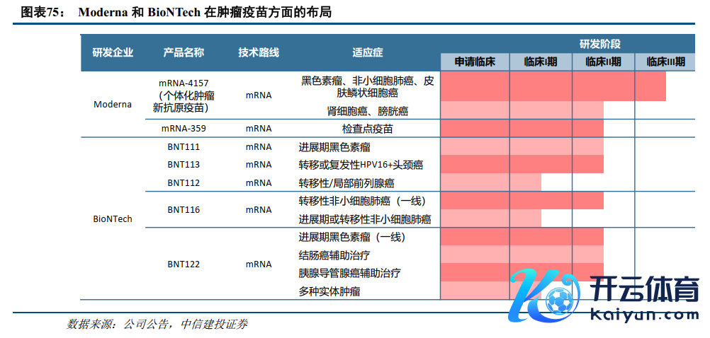 国外肿瘤疫苗本领阶梯各种,Moderna管线插足临床III期。目下国外已有多家企业布局肿瘤疫苗研发,本领阶梯包括mRNA、病毒载体、多肽亚单元等,针对的肿瘤类型各种,包括玄色素瘤、宫颈癌、结直肠癌、肺癌等。其中,Moderna与默沙东连结研发的个体化肿瘤疫苗mRNA-4157(V940)目下处于针对多个相宜症的临床III期阶段。IIB期试验的3年随访数据自大,mRNA-4157与帕博利珠单抗联用,可将复发或厌世风险编造49%,边远迁移或厌世风险编造62%。其他企业方面,BioNTech在肿瘤学领域有着丰富的研发管线布局,目下已有多种基于mRNA本领的肿瘤疫苗插足临床阶段。