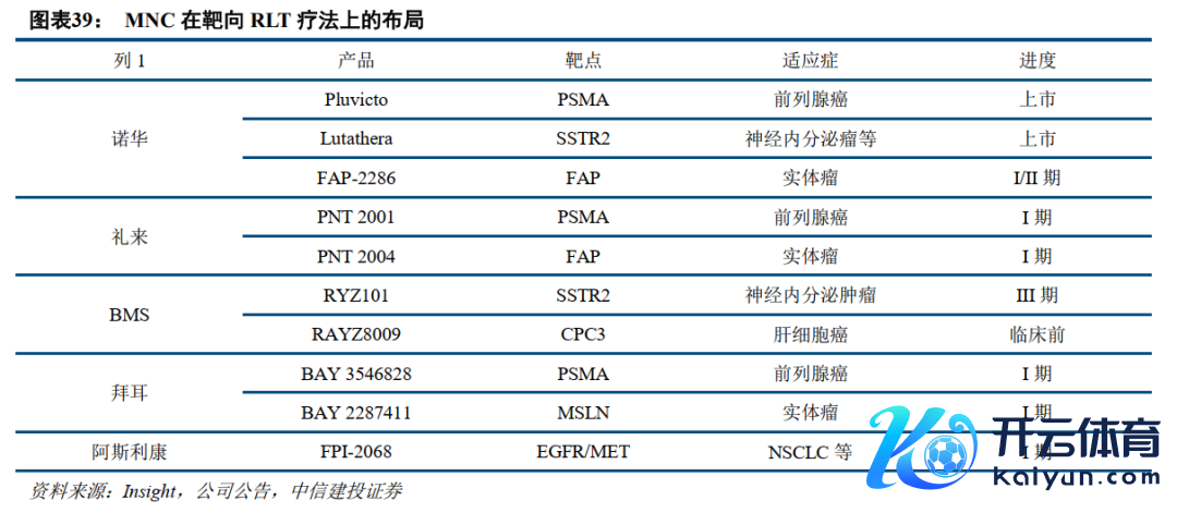 核药赛谈热度兴起,国内浩荡企业布局靶向RLT疗法。跟着Pluvicto以及Lutathera的得手,国内公司先后布局靶向RLT疗法,展现赛谈热度的兴起。跟着配体本领的合手续打破,目下靶向RLT疗法一经在部分肿瘤相宜症上展现出色疗效,咱们看好靶向RLT药物合座赛谈后续发展,主要有三点原因。1:靶向RLT赛谈已降生重磅药物。2:靶向RLT药物可布局多个靶点,涵盖多个肿瘤。传统的调感性核药主要针对甲状腺癌等几个癌症,但靶向RLT疗法涵盖PSMA、CA、EGFR、HER2等靶点,跟着产物的临床合手续鼓舞,畴昔在多个肿瘤上的疗效可期。3:新核素值得期待。目下靶向RLT药物主要蚁集于镥-177,而α射线类核素如锕-225等具备潜在更佳疗效以及更好安全性的特色,未驾临床中后果值得期待。