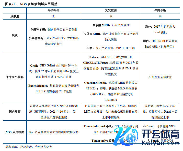 复发监测(MRD):先发产物已插足医保,畴昔关注获批及指南纳入。从本领阶梯来看,目下在肿瘤复发监测领域基于ctDNA检测渺小残留病灶(MRD)为主流,时时接纳NGS和定向检测取悦的方式,达到聪敏度和广度的均衡。MRD领域代表企业包括Natera、GuardantHealth等。Natera基于Tumor-informed策略代表产物Signatera已有多项相宜症获Medicare医保纳入,GuardantHealth基于Tumor-naïve策略产物GuardantReveal结直肠癌MRD相宜症已纳入Medicare报销,从历史情况看临床左证是支合手Medicare医保纳入的枢纽要领。瞻望2025年,国外代表企业均有多项MRD临床商讨有望迎来数据读出(见下表)。