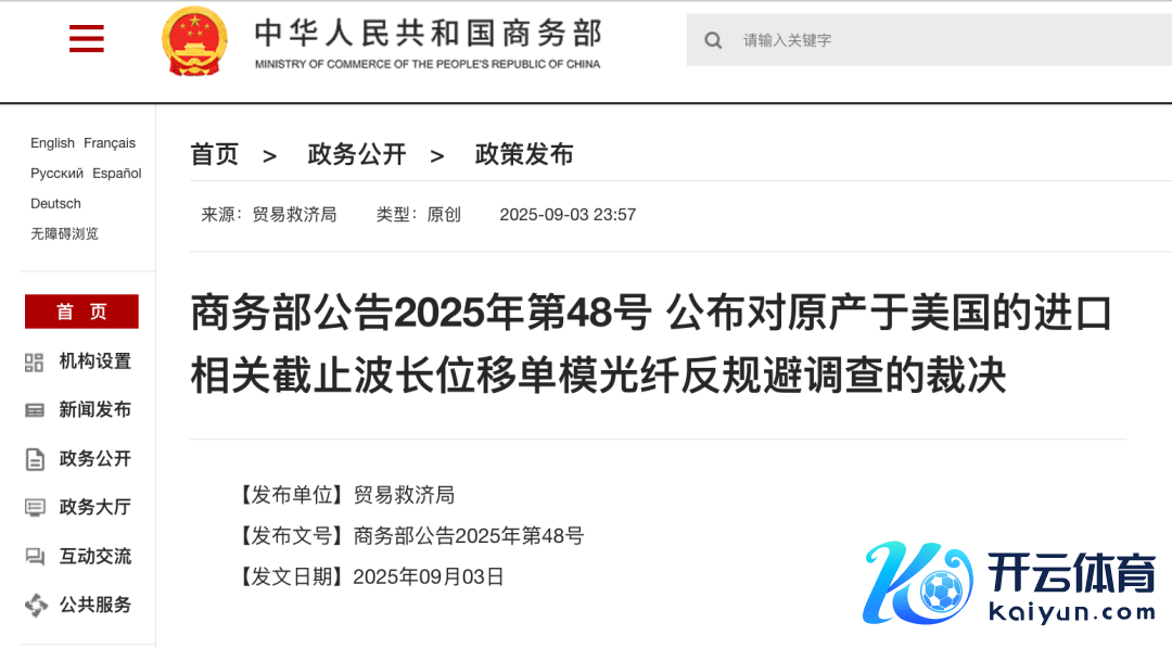 9月3日,商务部公布对原产于好意思国的入口有计划终结波长位移单模光纤反逃匿访问的裁决。商务部公告2025年第48号