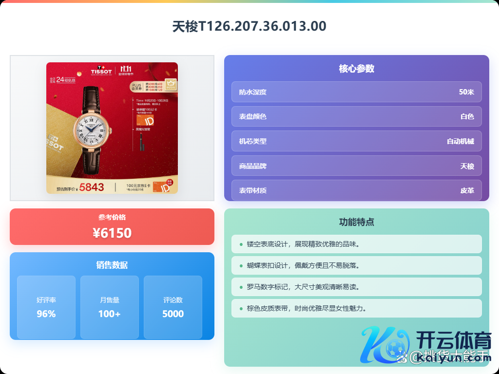 天梭T126.207.36.013.00这款表,它不只是是一块腕表,更像是一件清雅的配饰,不祥升迁你的气质,展现你的试吃。它稳健那些追求品性、防备细节的当代女性。它就像一位缄默随同在你身边的老一又友,见证你的每一个遑急工夫,记载你的每一次精彩骤然。