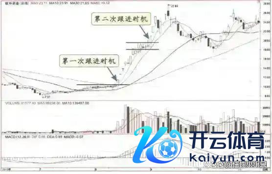 2.若未赶上第一波拉升行情,则可当股价回落整理到5日MA和10日MA之间时,再进场操作;或者当股价在上升途中保管平台整理走势且放量突破此平台时再买入。