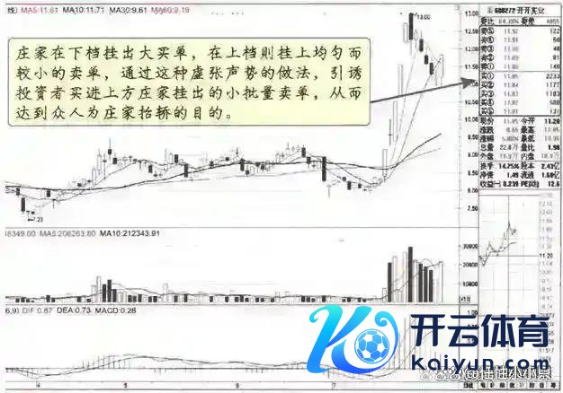 庄家采用这种格式拉升时,股价会沿着一定的斜率进取拉高,而在当日分时走势图上,发扬为下方有广阔的买单出现,这是实力强盛的庄家为了封住股价的回险阻间而挂出的,然后再缓缓把股价往上拉升。拉升一段时间后,庄家还往往故意打压一下股价,以诱导买盘去逢低吸纳,然后又将股价拉上去。临了庄家往交游会诓骗上市公司题材的配合来覆盖出货,如图所示。
