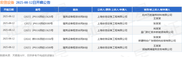本站音尘,把柄天眼查APP清楚,近日公布了5则上海宏信斥地工程有限公司手脚原告/上诉东说念主的开庭公告,案由为建筑斥地租借条约纠纷,开庭日历为2025年8月12日。珍摄实质如下: 数据开首:天眼查APP 以上实质为本站据公开信息整理,由AI算法生成(网信算备310104345710301240019号)云开体育,不组成投资提出。