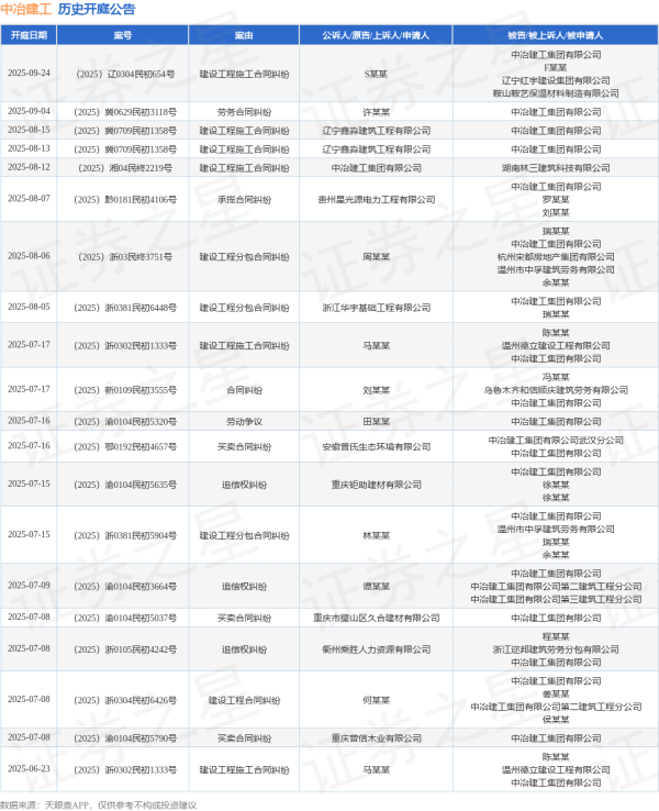 本站音书,凭据天眼查APP败露,近日公布了一则中冶建工集团有限公司看成原告/上诉东说念主的开庭公告,详备本色如下: 案号:(2025)湘04民终2219号审理法院:湖南省衡阳市中级东说念主民法院案由:配置工程施工协议纠纷当事东说念主信息:原告/上诉东说念主:中冶建工集团有限公司被告/被上诉东说念主:湖南林三建筑科技有限公司开庭日历:2025年8月12日 凭据统计,近一年内以中冶建工集团有限公司为当事东说念主的历史开庭公告有294则,其中案由为“交易协议纠纷”的公告以65则居首,其次为“配置工程