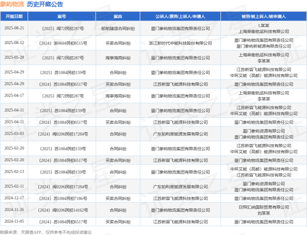 本站音问,凭据天眼查APP涌现开云体育(中国)官方网站,近日公布了一则厦门象屿物流集团有限包袱公司看成被告/被上诉东谈主的开庭公告,注目骨子如下: 案号:(2024)浙0604民初8515号审理法院:绍兴市上虞区东谈主民法院案由:生意协议纠纷当事东谈主信息:原告/上诉东谈主:浙江新期间中能科技股份有限公司被告/被上诉东谈主:厦门象屿物流集团有限包袱公司、厦门象屿新动力有限包袱公司开庭日历:2025年8月12日 凭据统计,近一年内以厦门象屿物流集团有限包袱公司为当事东谈主的历史开庭公告有16则,